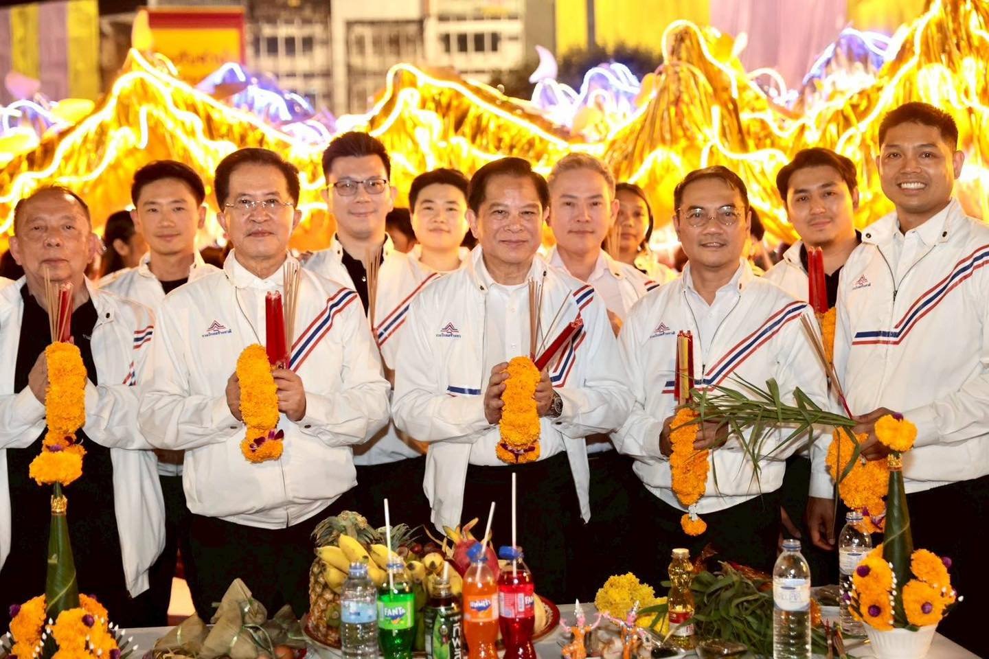 ในโอกาสนี้ นายพีระพันธุ์ ได้ร่วม ตีฆ้องชัย 3 ครั้ง เพื่อเป็นสัญลักษณ์แห่งการเอาฤกษ์เอาชัย และประกาศเจตนารมณ์ในการขอพรต่อดวงพระวิญญาณสมเด็จพระเจ้าตากสินฯ ให้พรรครวมไทยสร้างชาติประสบความสำเร็จในการเลือกตั้งที่จะถึงนี้ โดยระบุว่าตนเองพร้อมเต็มที่ในการทำหน้าที่ "นายกรัฐมนตรี" เพื่อรับใช้แผ่นดิน