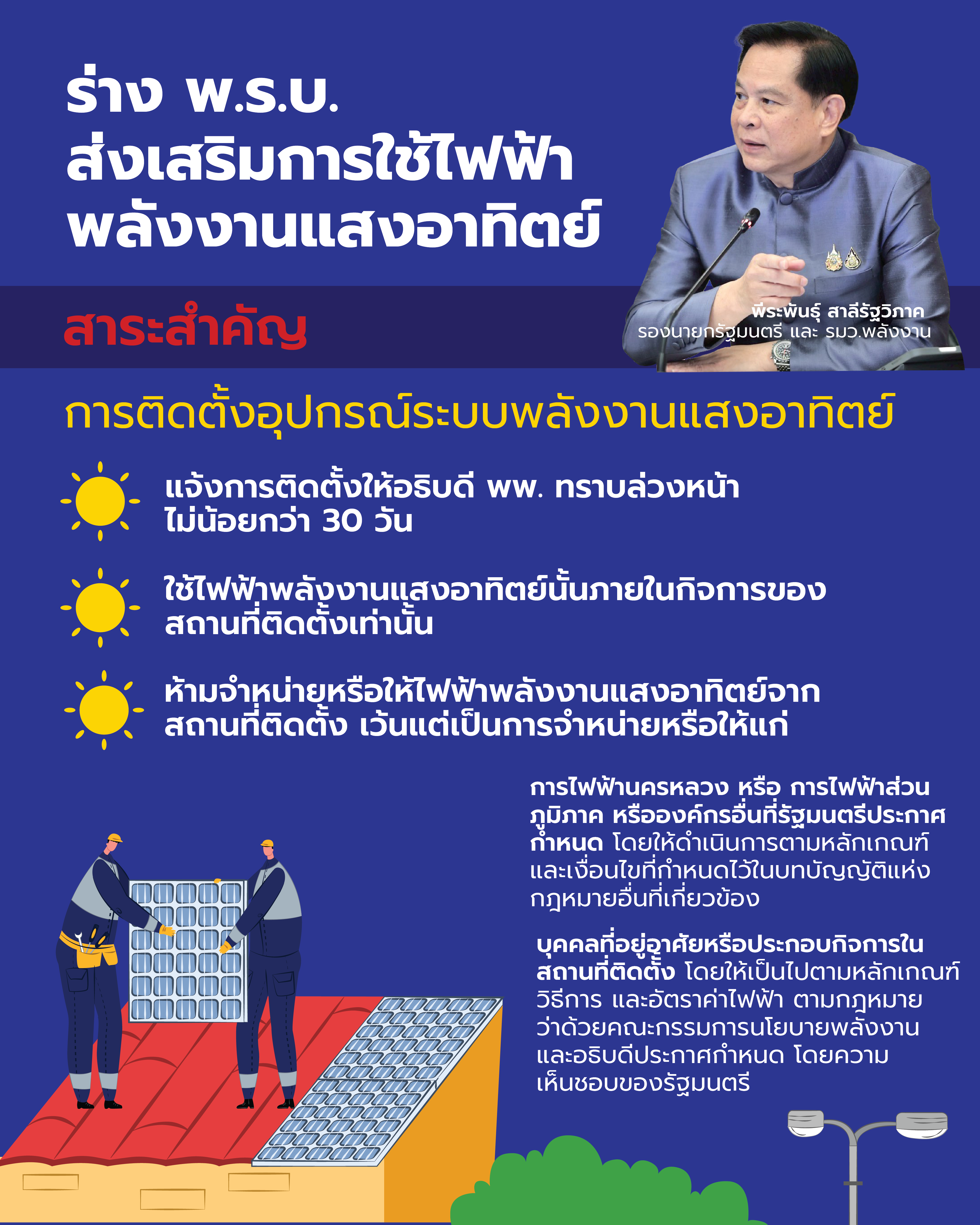 สรุปสาระสำคัญของ ร่าง พ.ร.บ. ส่งเสริมการใช้ไฟฟ้าพลังงานแสงอาทิตย์