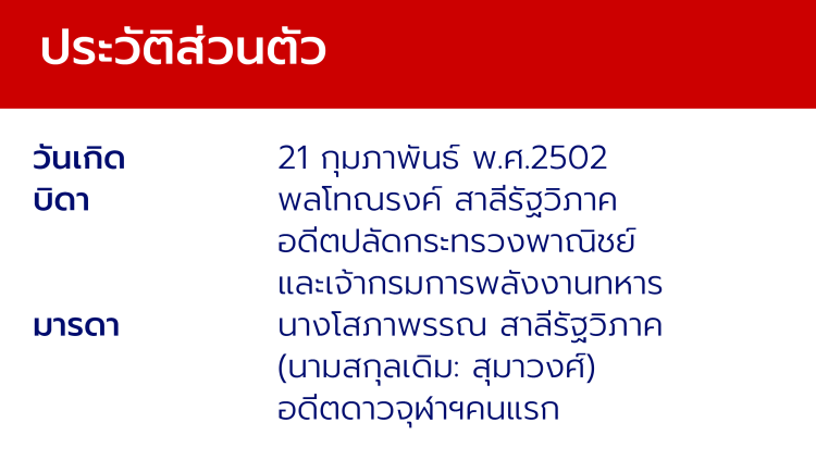 เกิดที่กรุงเทพมหานคร เป็นบุตรของ พลโทณรงค์ สาลีรัฐวิภาค อดีตปลัดกระทรวงพาณิชย์ เจ้ากรมการพลังงานทหาร และผู้อำนวยการองค์การเชื้อเพลิง และ นางโสภาพรรณ สาลีรัฐวิภาค (นามสกุลเดิม: สุมาวงศ์) อดีตดาวจุฬาฯคนแรก