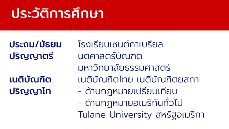 ศึกษาในระดับปริญญาตรี นิติศาสตร์บัณฑิต มหาวิทยาลัยธรรมศาสตร์
